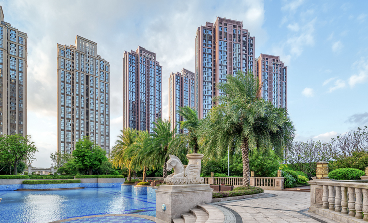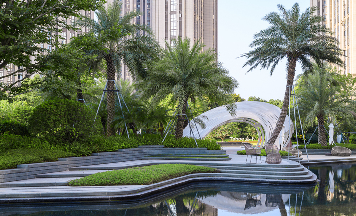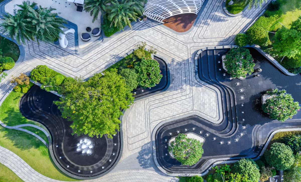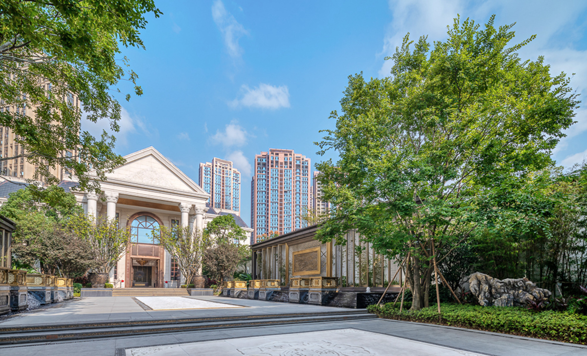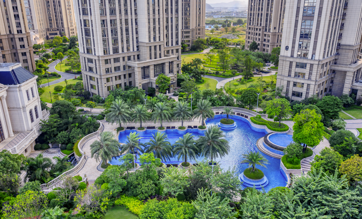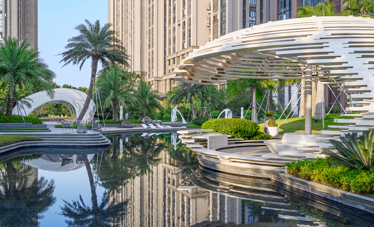 泰禾福州湾项目坐落于福州三江口CBD核心区,是泰禾首个湾系作品。项目延续湾系精华,结合现代构成语言,融入东方情怀,打造“一环、两湾、六岛”的景观结构。以缩移摹写的手法,将无限的“江、山、湖、岛”纳入有限的场地之中,营造出“移天缩地在君怀”的独特景境,足不出园,便揽风光。