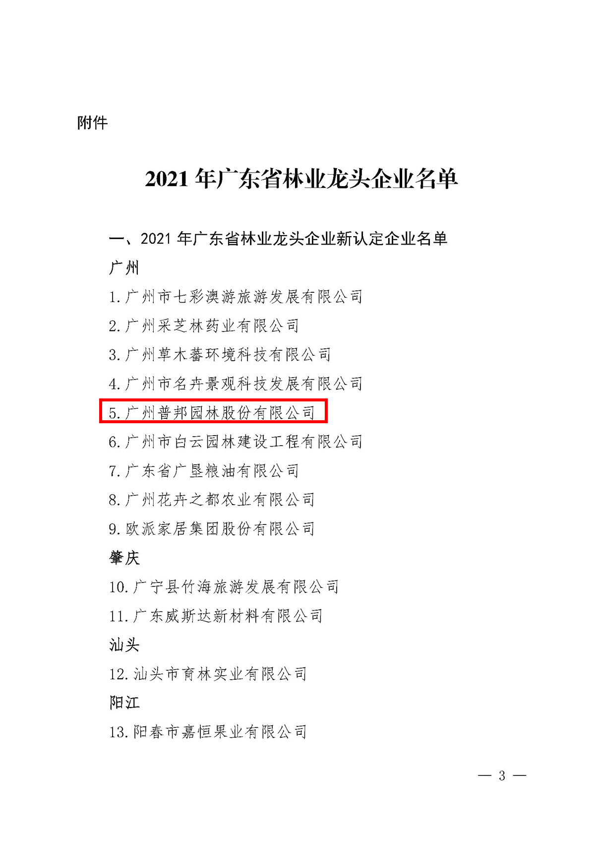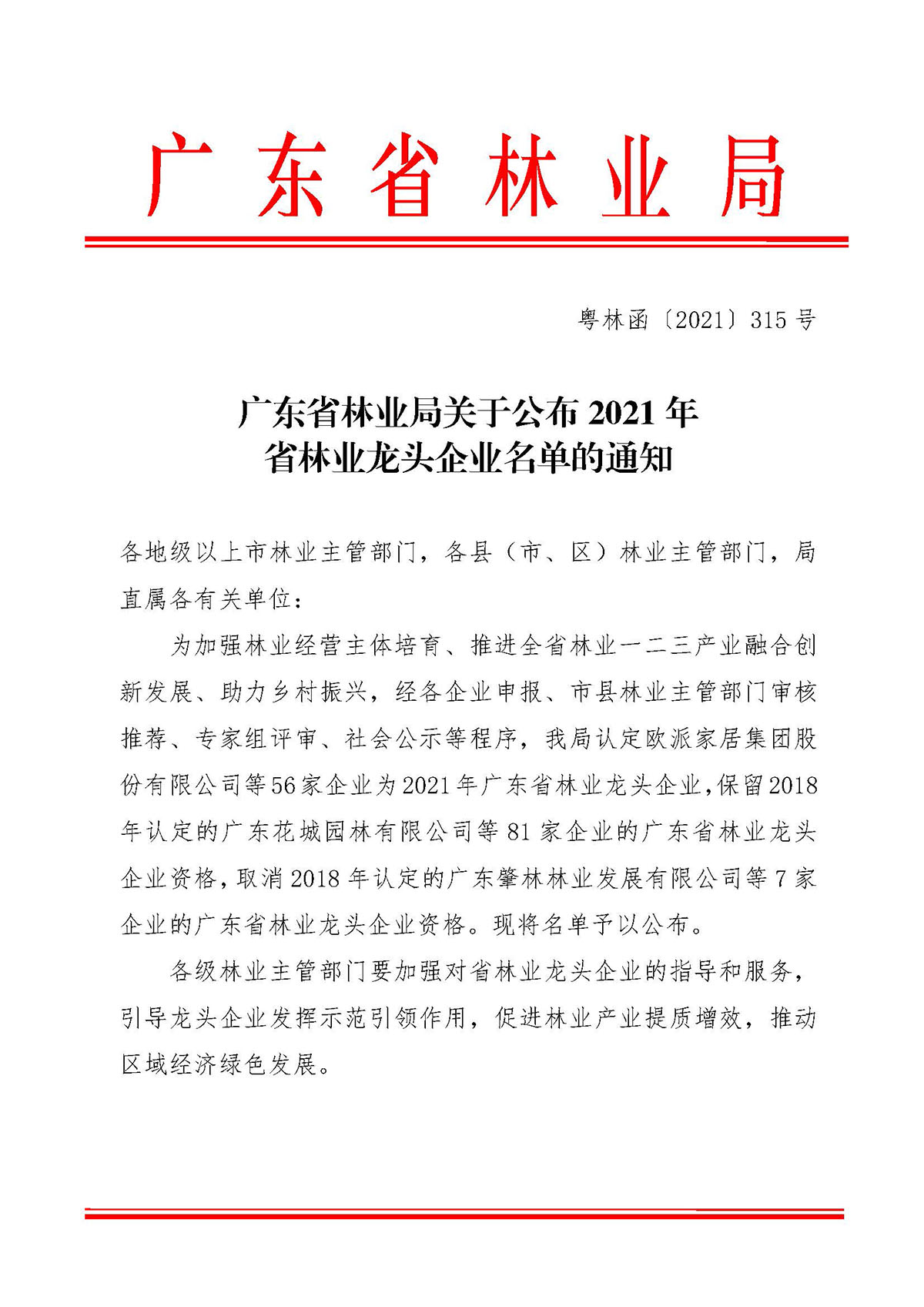 12月13日,广东省林业局发布《关于公布2021年省林业龙头企业名单的通知》,认定广州bv伟德源自英国始于1946园林股份有限公司等56家企业为2021年广东省林业龙头企业。此次认定工作,旨在进一步培育林业经营主体,发挥林业龙头企业示范带动作用,推动我省现代林业一二三产业融合,促进林业产业规模化、集约化、产业化发展发展。
