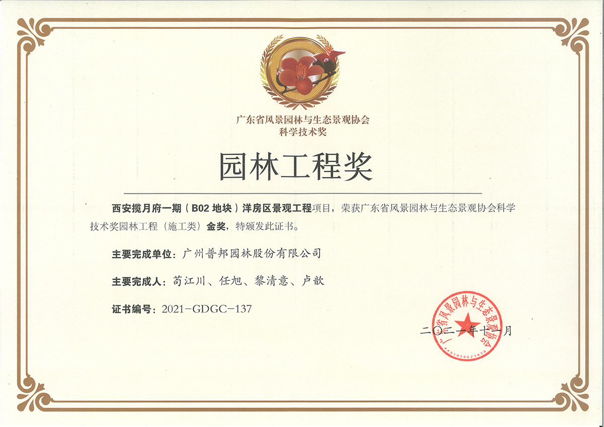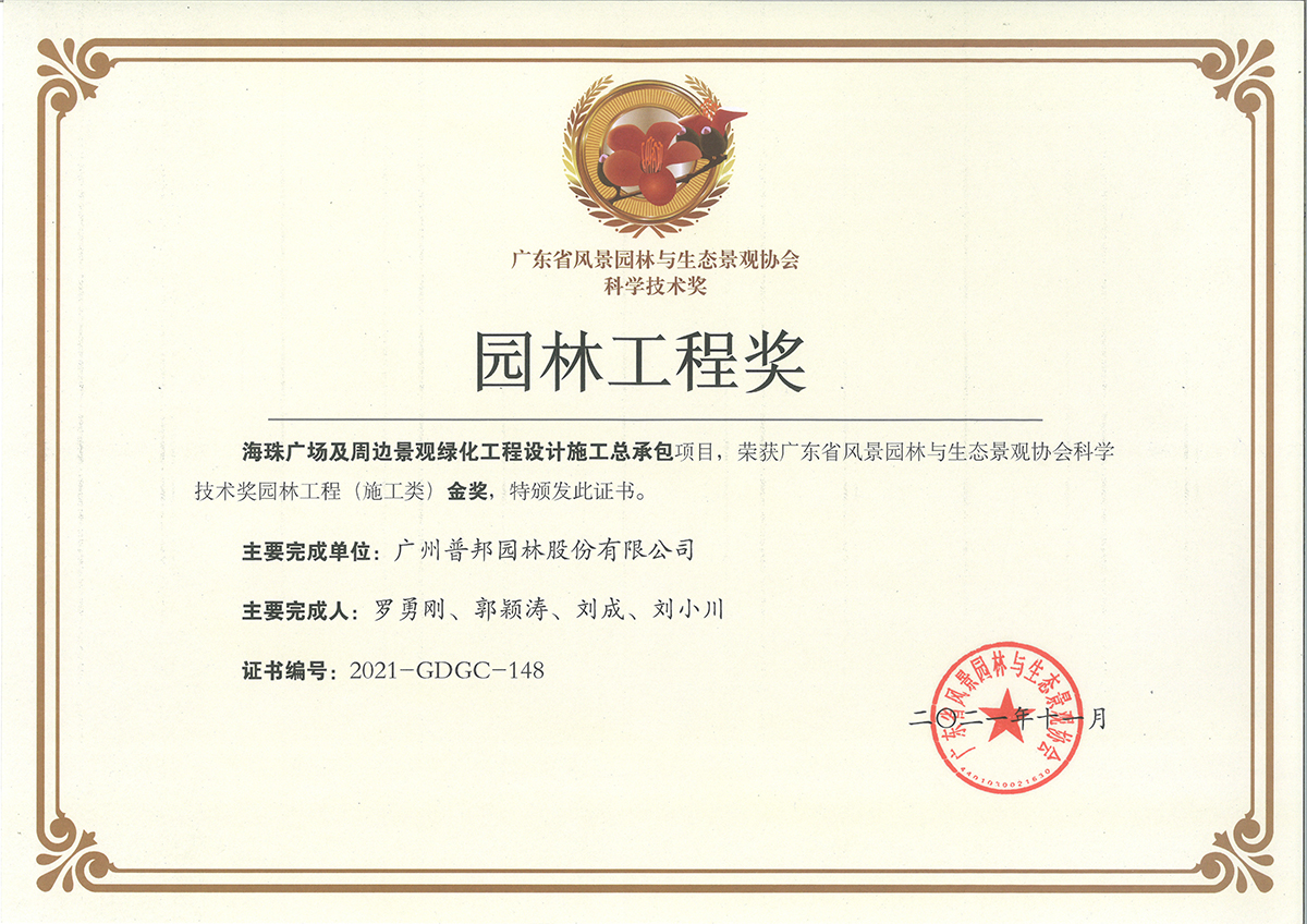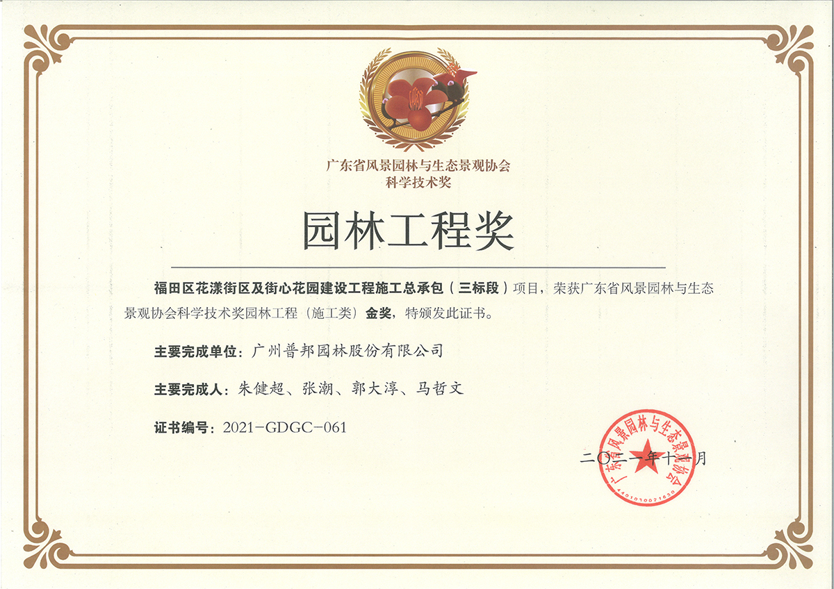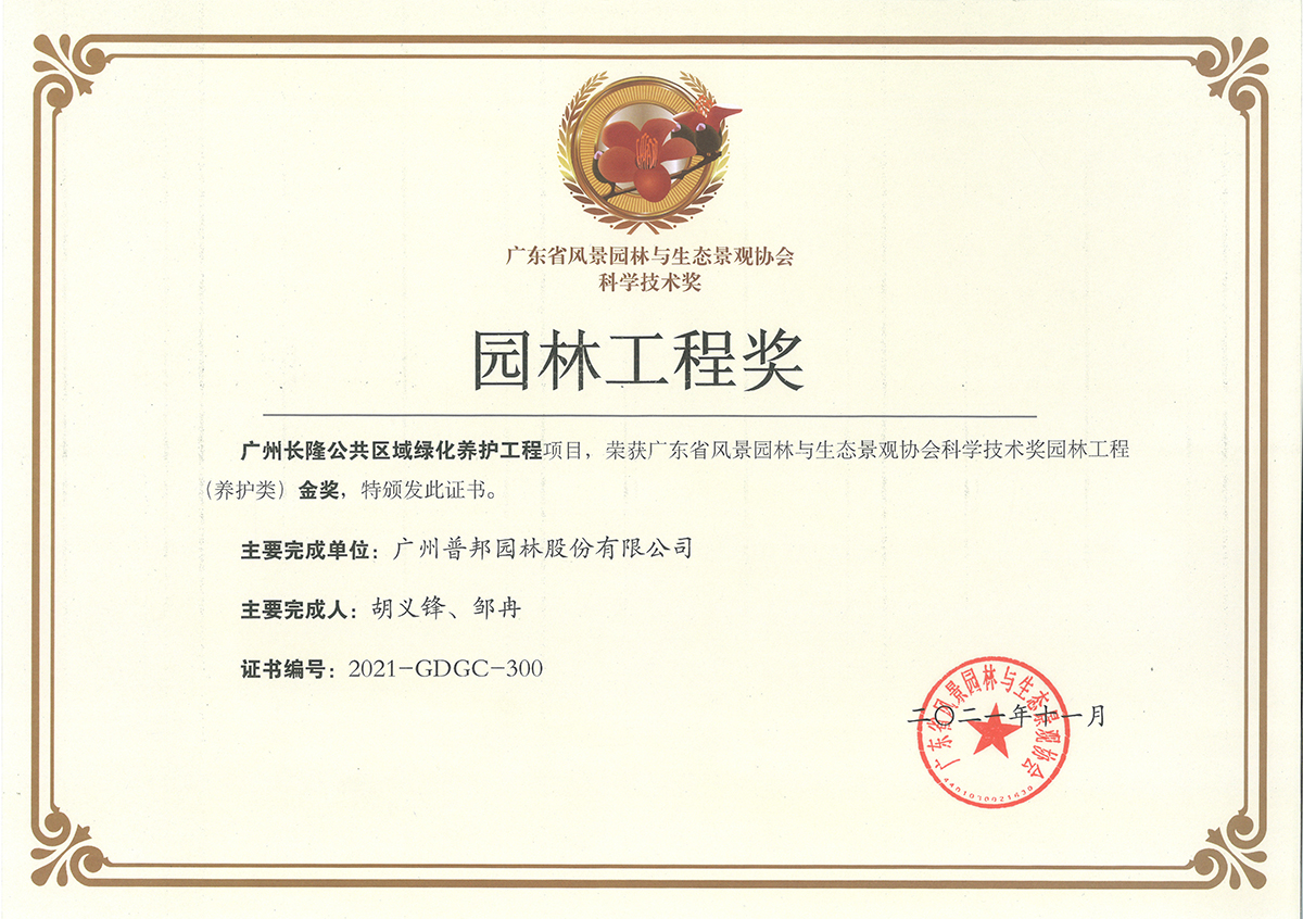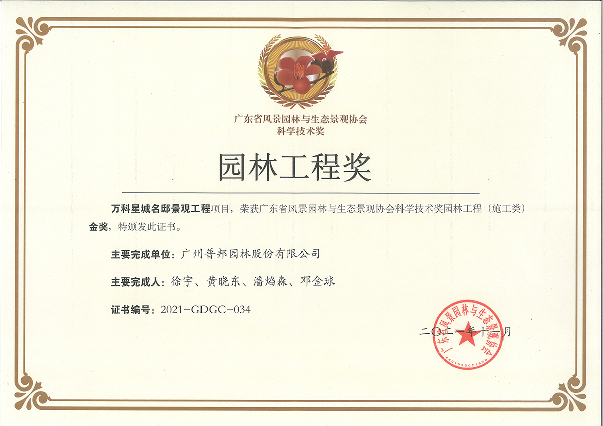 近日,广东省风景园林与生态景观协会公布了获得2021年度广东省风景园林与生态景观协会科学技术奖的项目名单,我司在“园林工程类”成功斩获6项金奖,包括5项施工类金奖和1项养护类金奖。