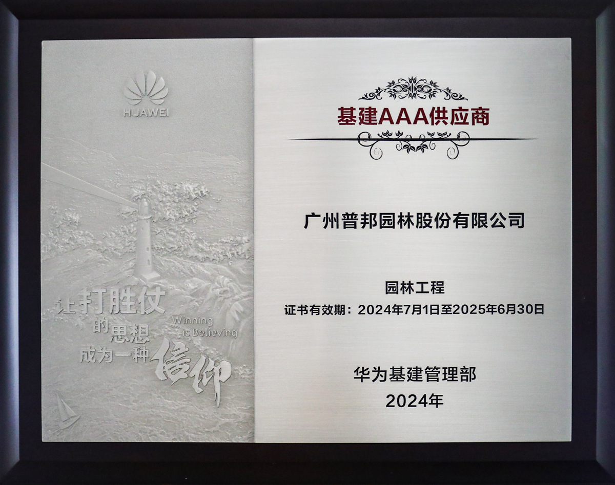 11月22日,“质造精品 诚信履约”2024年华为基建供应商大会在东莞松山湖召开。会上,我司荣获华为基建最高荣誉AAA供应商(园林工程),成为华为所有基建供应商中唯一连续三年入选的单位。